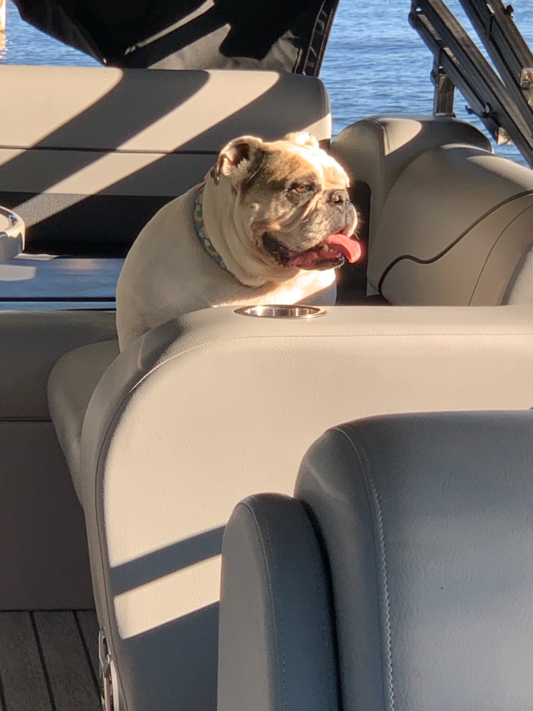NellA also enjoyed going to the Lake and enjoyed the rides in the truck. She handed out many smiles to many passing motorists along her travels. The 1st thing she would do when she walked into the lake house was jump on HER couch. That’s where you would find NellA the rest of the weekend was on HER couch. Unless her buddy Jimmy or Brandee came by, then it was belly rubs all night; or chew on Dan’s hat.