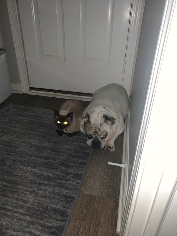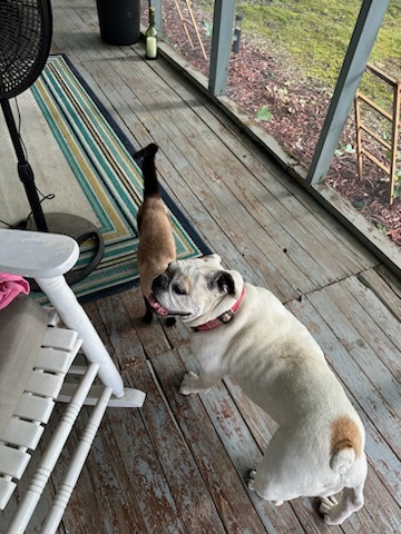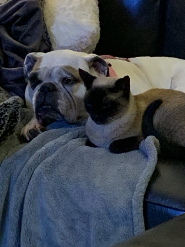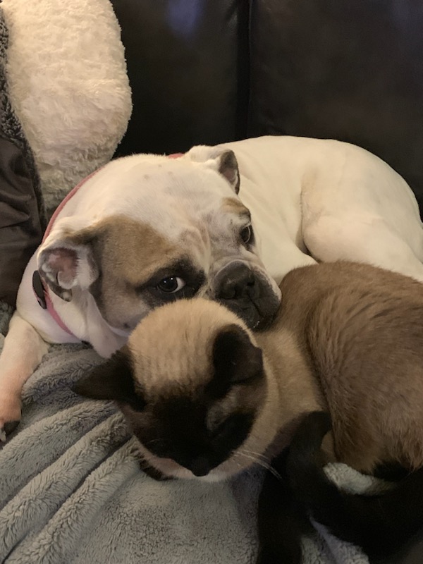 She shared a special bond with Snowball as that was her buddy. If a storm would come kitty would go get NellA out of her “Condo” and they would both retreat to the laundry room to ride out the storm. I don’t really think NellA was scared of storms, I think she was there just to comfort Snowball who is definitely scared of storms. I’ve never seen a dog let a cat rub up against them as much as NellA did. NellA would let that cat do anything to her and she never batted an eye at her. Snowball is going to miss her buddy.