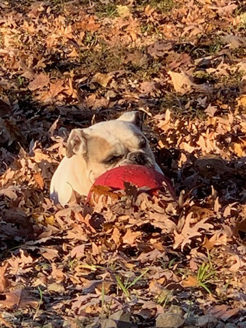 Her favorite toy was a plastic dinosaur and her large rubber ball. She hated anything that rolled that includes lawn carts, lawn mowers, golf carts; if it had wheels she wanted to chew them. Besides Kitty her other best friend was BDB Melissa and would wag her little nub violently until Melissa would pet her and give her attention.