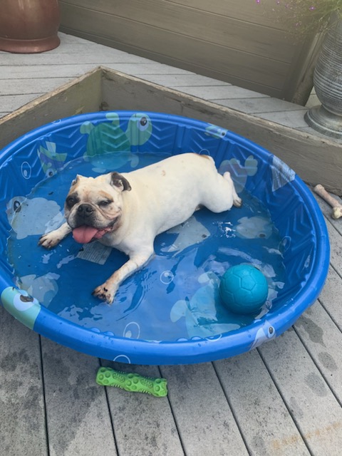 She also loved patio chair cushions…..not to lay on them but to chew them and destroy them. She loved the outdoors, except camp fires….she would spend hours laying on HER deck and lounging in the pool. She didn’t like change and anytime her mom would place a new plant on the deck, NellA would bark and bark and sometimes chew the planter until mom or dad would remove or put the planter up high off NellA’s deck.